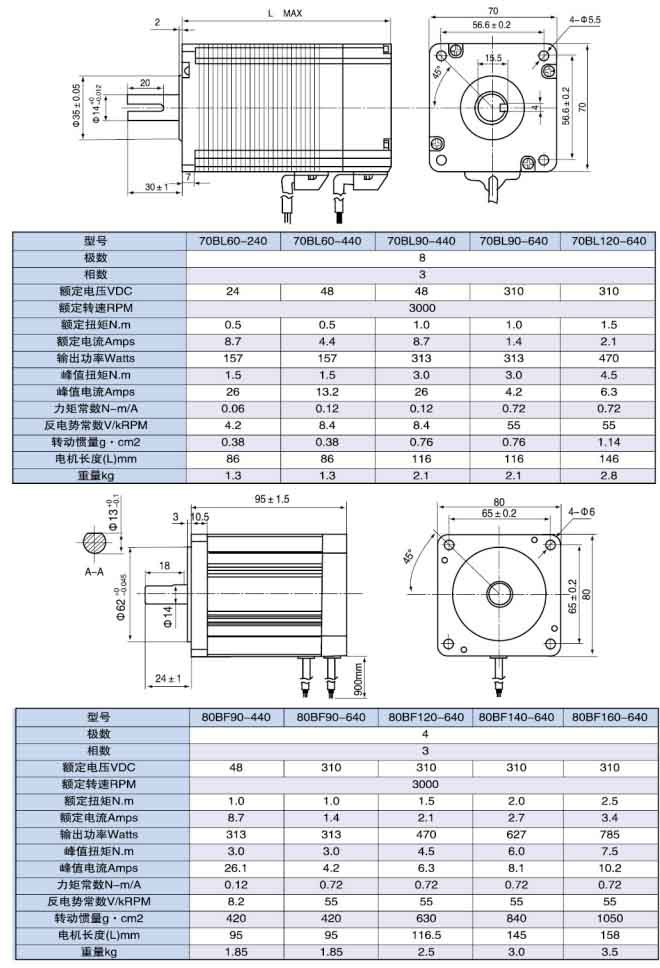 無刷電機采用了4極和8極轉(zhuǎn)子設計,機型號有42、57、60、70、8086、110;0.1Nm6Nm的連續(xù)轉(zhuǎn)矩;高性能釹鐵硼磁鋼提供3倍以上的峰值扭矩。